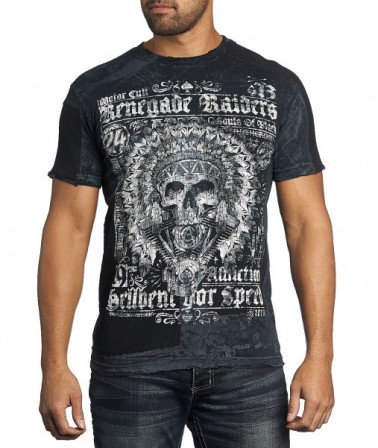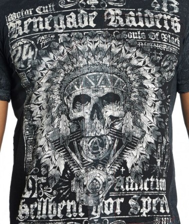 Футболка AФутболка Affliction Renegade Raiders из оригинальной коллекции Afflction. Модель создана из 100 % натурального хлопкового материала. Детали: фирменная состаренная ткань от Affliction, уникальное нанесение рисунка на футболку.