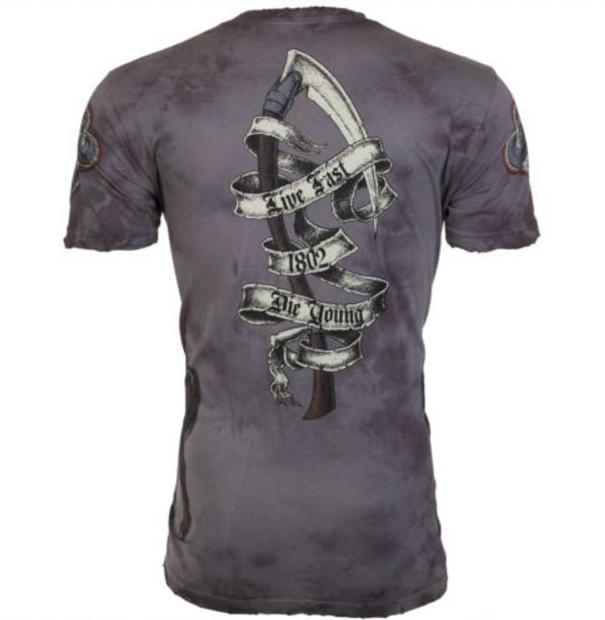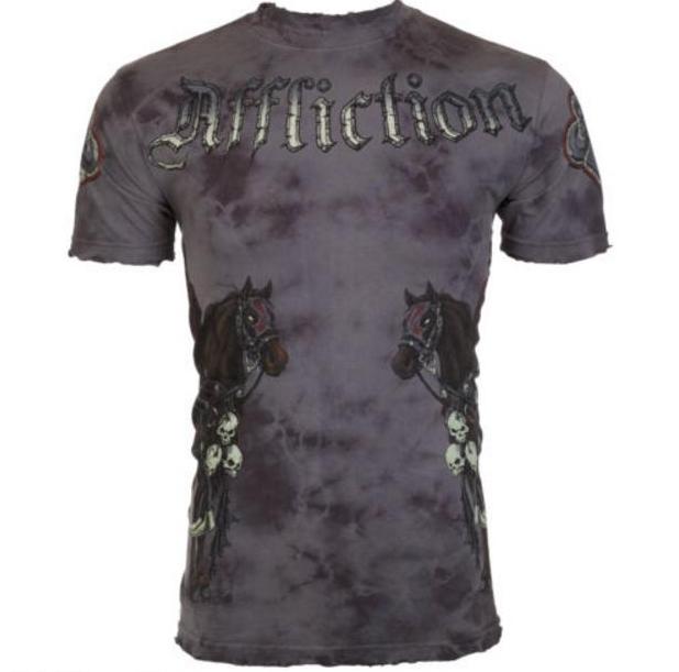 Футболка Affliction Rider из оригинальной коллекции Afflction. Модель создана из 100 % натурального хлопкового материала. Детали: фирменная состаренная ткань от Affliction, уникальное нанесение рисунка на футболку.