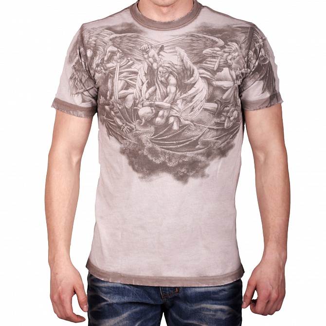 Футболка Affliction Rising Sky из оригинальной коллекции Afflction. Модель создана из 100 % натурального хлопкового материала. Детали: фирменная состаренная ткань от Affliction, уникальное нанесение рисунка на футболку.