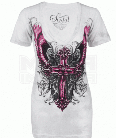 Футболка Affliction Sinful Devoted Vneck Tee из оригинальной коллекции Afflction. Модель создана из 100 % натурального хлопкового материала. Детали: фирменная состаренная ткань от Affliction, уникальное нанесение рисунка на футболку.