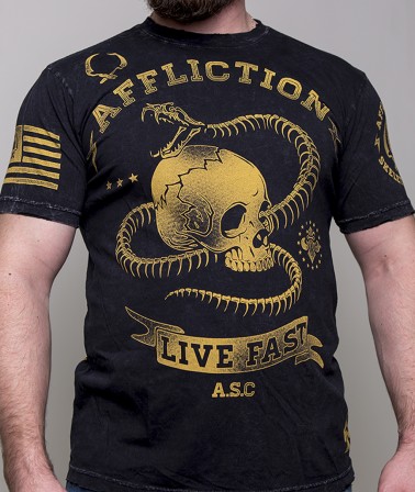 Футболка Affliction Snake Eyes из оригинальной коллекции Afflction. Модель создана из 100 % натурального хлопкового материала. Детали: фирменная состаренная ткань от Affliction, уникальное нанесение рисунка на футболку.