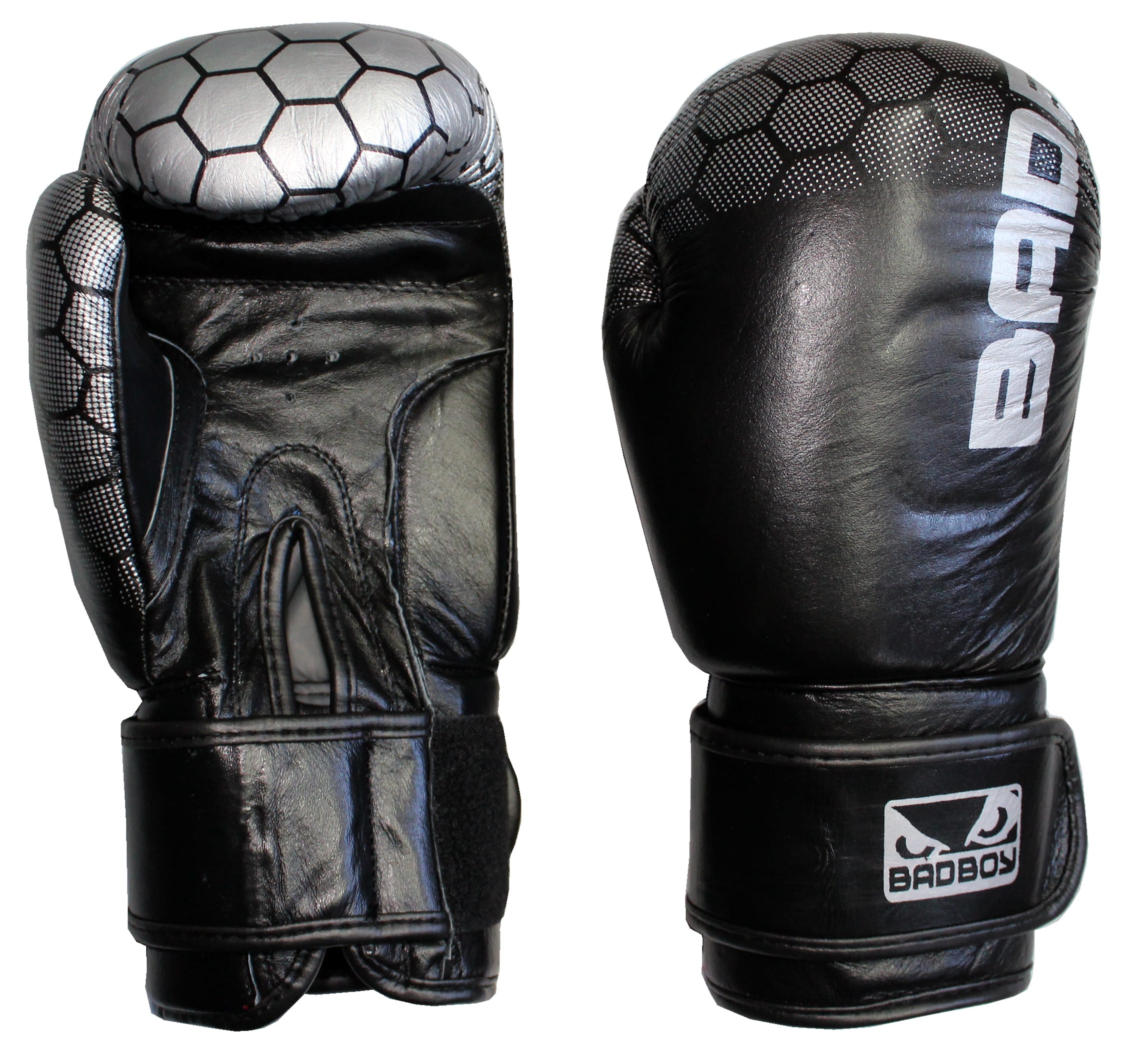 Перчатки боксерские Bad Boy Black Silver кожаные (в чехле)