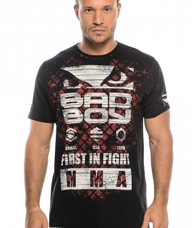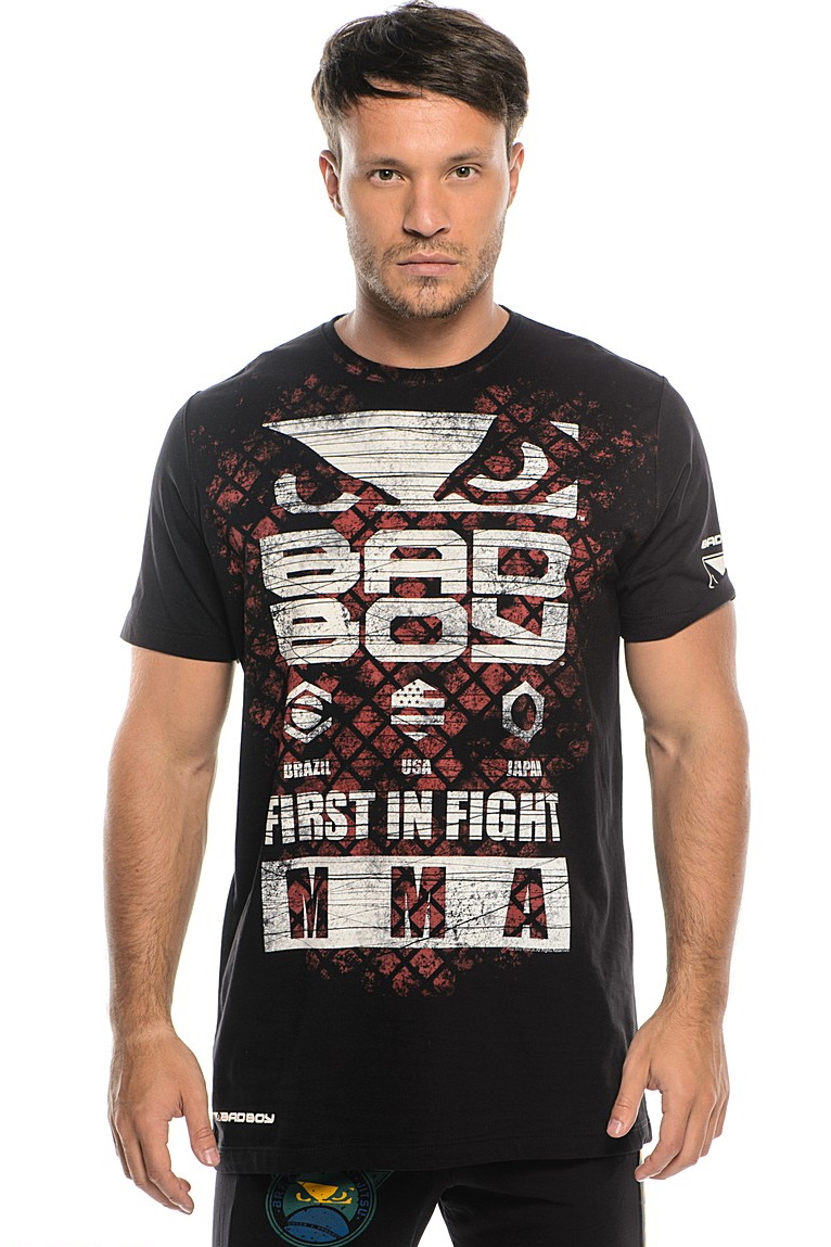 Прекрасная футболка Bad Boy MMA 2, выполненная из качественного и комфортного материала. Спереди яркое и эффектное нанесение со стилизованным изображением клетки и логотипом "BADBOY", надписи "MMA", "FIRST IN FIGHT" , сзади фирменные "глаза" логотипа Bad Boy. Очень модная футболка - хороший подарок для поклонников единоборств.
