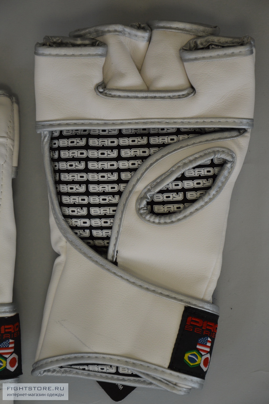 Перчатки для ММА  Bad Boy Pro Series MMA Glove белые сделаны из прочной комбинированной кожи. Ударо-поглащающая вставка из специальной пены, гасит удар, защищает руки от травм. Липучка на запястье надежно фиксикует перчатку на руке. Традиционное высокое качество от Bad Boy.