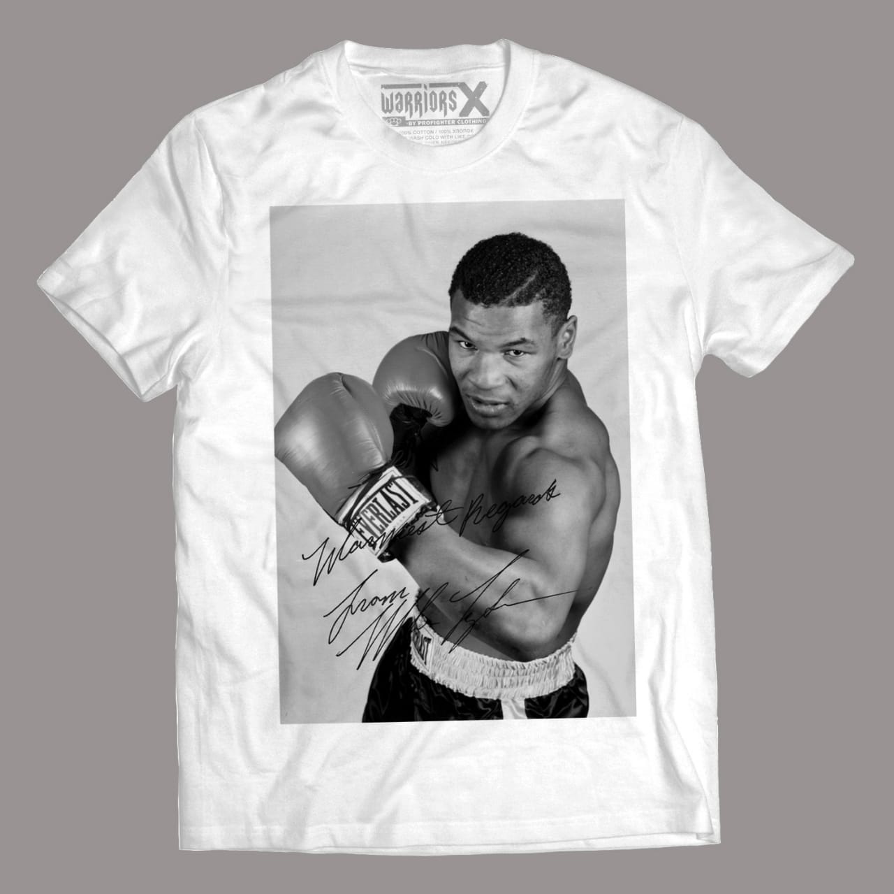 Футболка Майк Тайсон Warriors 5, с изображением Майка Тайсона на пике своей карьеры и физической формы в стойке и с подписью. Отличное качество и нанесение рисунка.