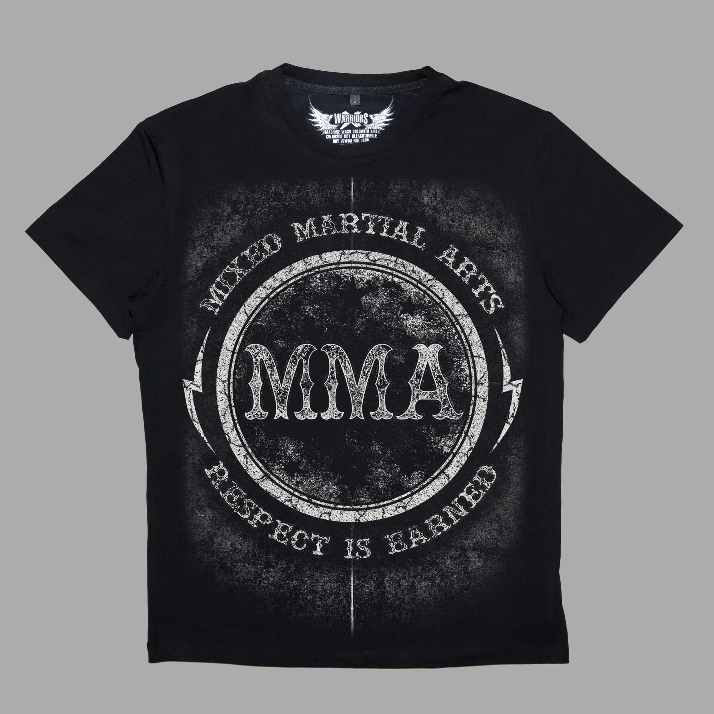 Футболка MMA Respect WarriorsX. Черная футболка из новой серии WarriorsX. Белый рисунок на черном фоне - это визитная карточка этой серии. Надписи "MMA", "Mixed Martial Arts" и "Respect Is Earned".