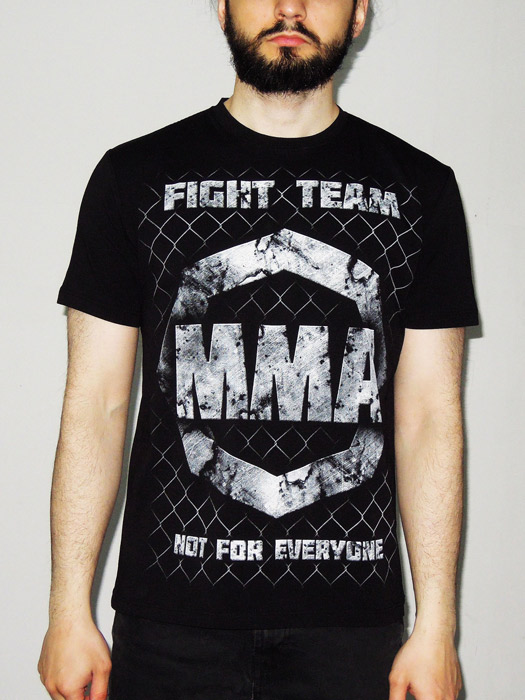 Футболка MMA WarriorsX. Черная футболка из новой серии WarriorsX. Белый рисунок на черном фоне - это визитная карточка этой серии. Надписи "ММА", "Fight Team" и "Not For Everyone".
