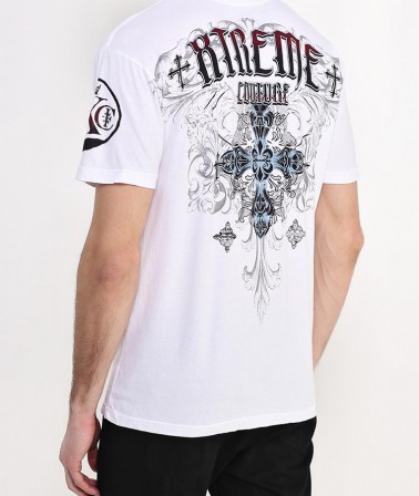 Футболка Xtreme Couture Slassic Crest из оригинальной коллекции Afflction. Модель создана из 100 % натурального хлопкового материала. Детали: фирменная состаренная ткань от Affliction, уникальное нанесение рисунка на футболку.