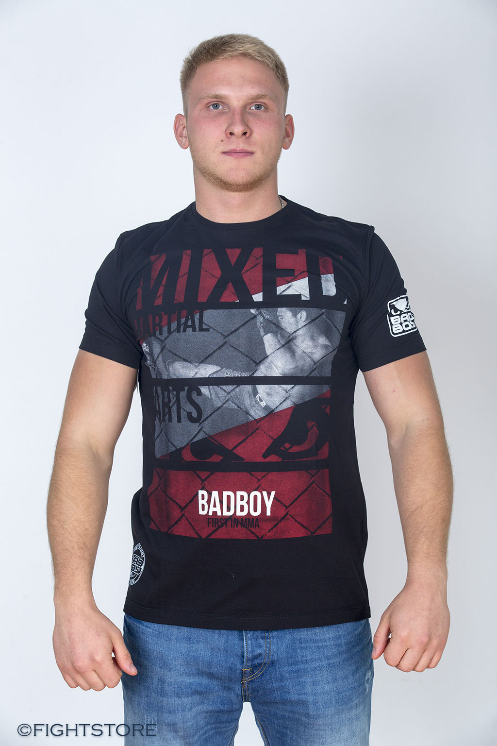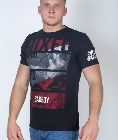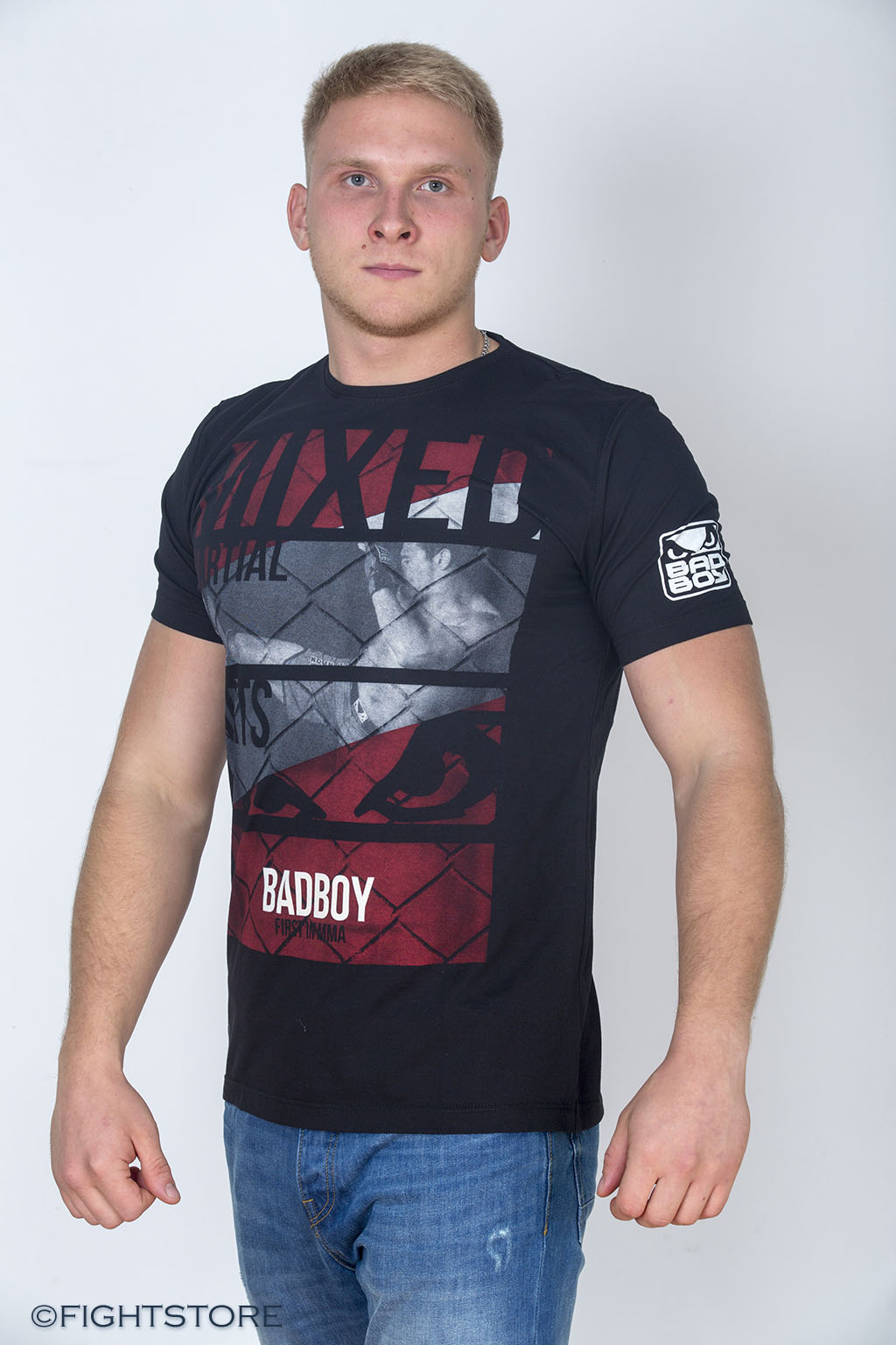 Прекрасная футболка Bad Boy Fighter, выполненная из качественного и комфортного материала. Спереди яркое и эффектное нанесение со стилизованным изображением клетки и логотипом "BADBOY", сзади надписи FIGHTER, PROFESSIONAL FIGHTER. Очень модная футболка - хороший подарок для поклонников единоборств.