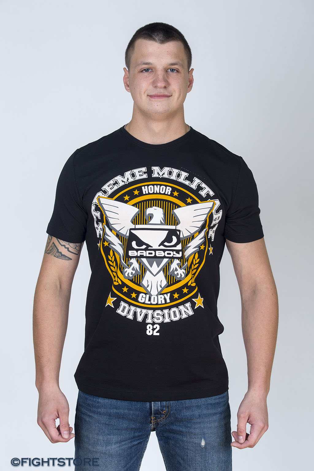 Стильная футболка Bad Boy Division из новой коллекции. Выполнена из качественного и комфортного материала. Спереди яркое нанесение с всемирно известным логотипом Bad Boy и стилизованным изображением орла, сзади фирменная надпись "BADBOY".