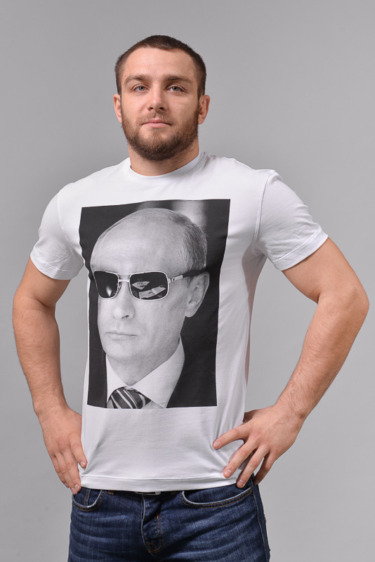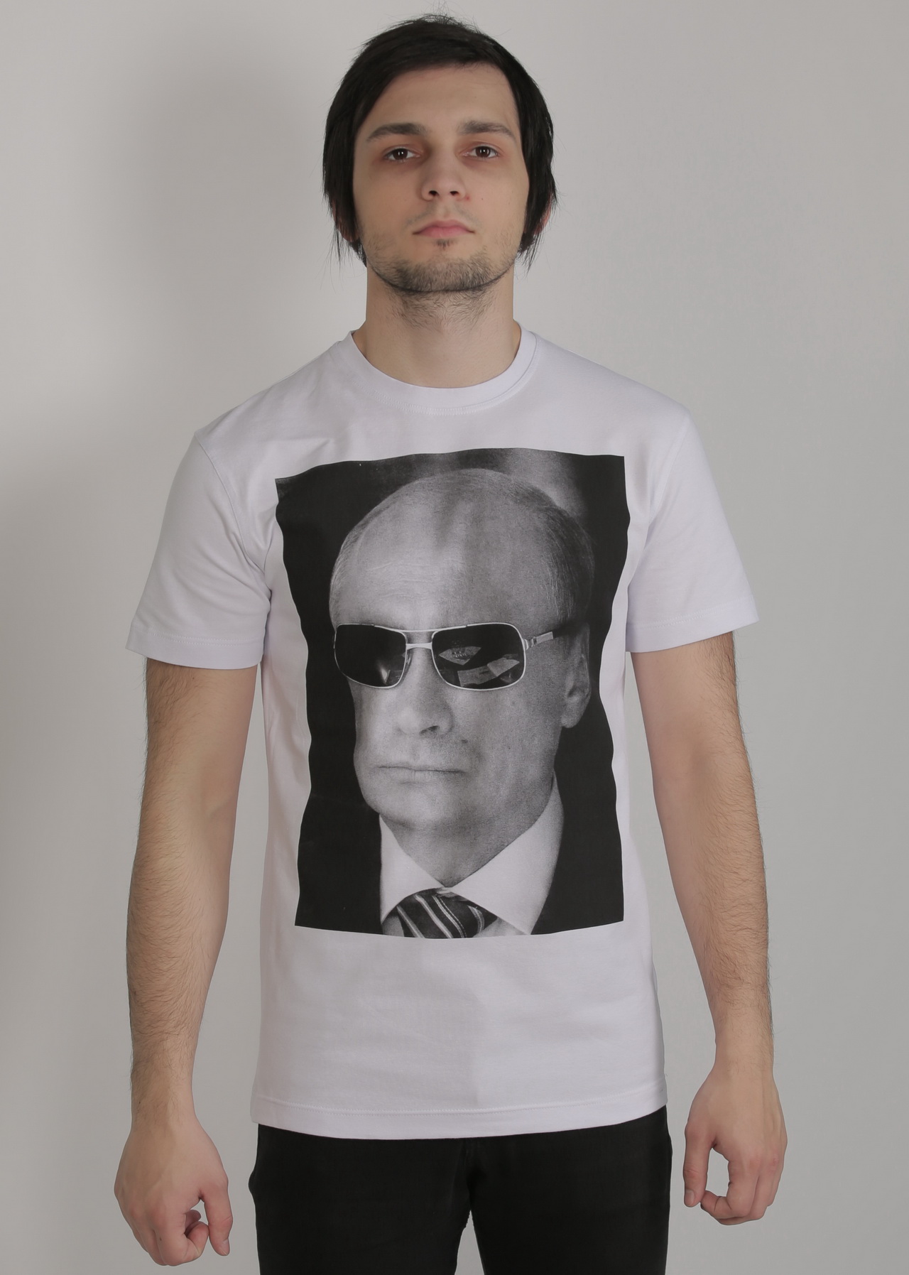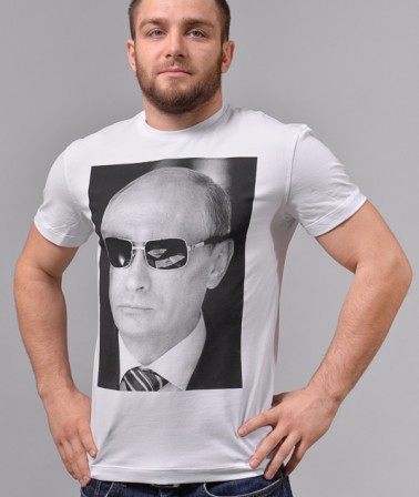 Футболка с крупным портретом Владимира Владимировича Путина. Стрейтч-материал. Футболка удобно сидит и комфортно облегает фигуру.