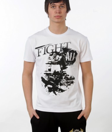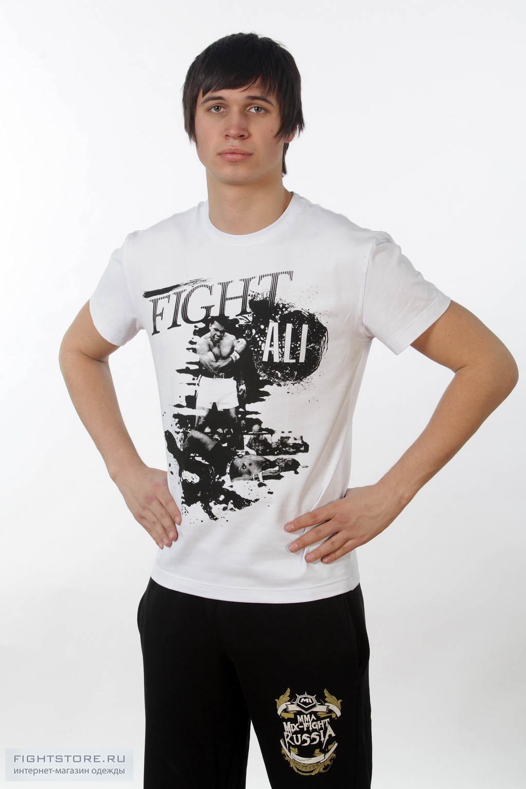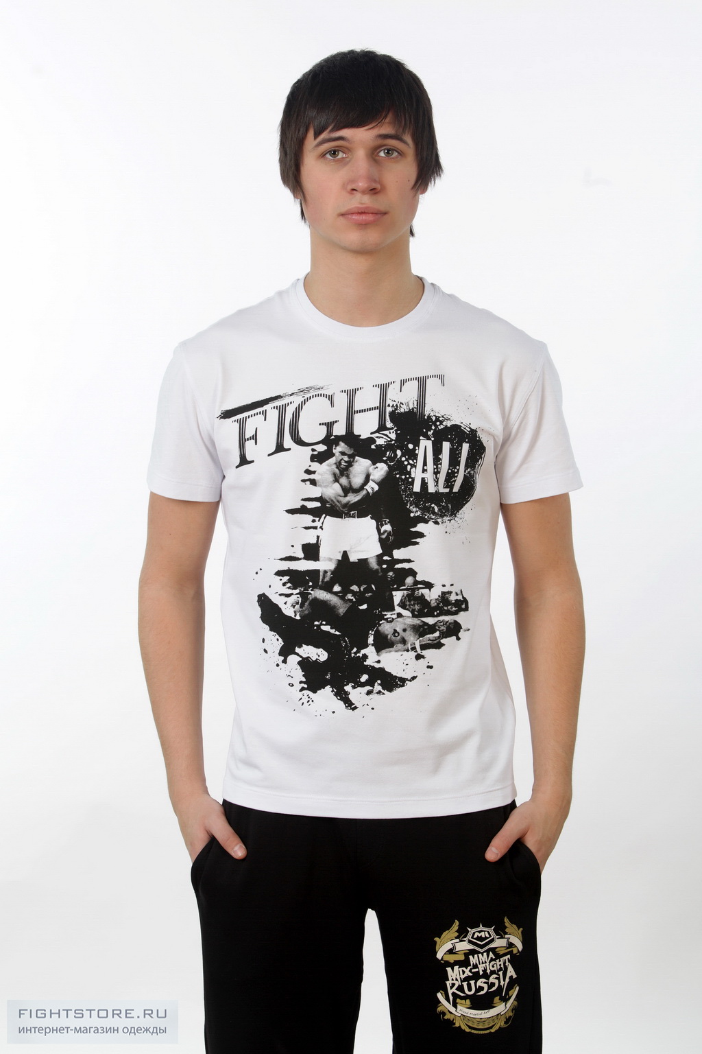 Футболка Мохаммед Али с изображением фотографии на которой запечатлен Величайший Мохаммед Али, склонившийся над отправленным в нокдаун соперником в бою за титул чемпиона мира по боксу. Эта одна из самых узнаваемых и популярных в фотографий в истории бокса!