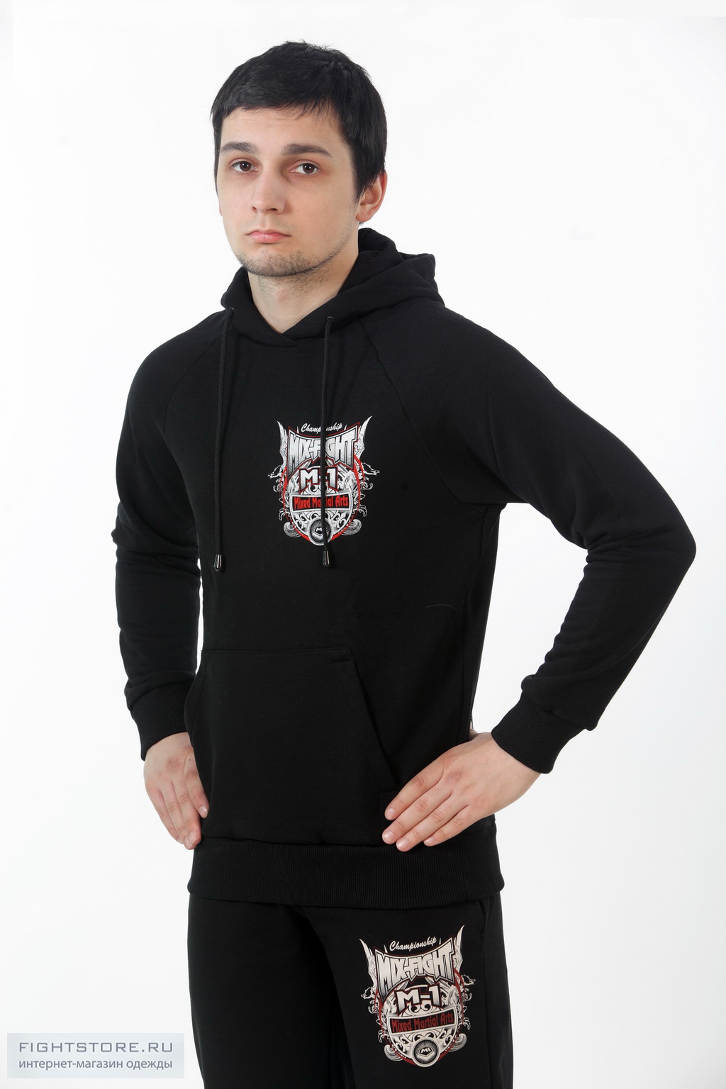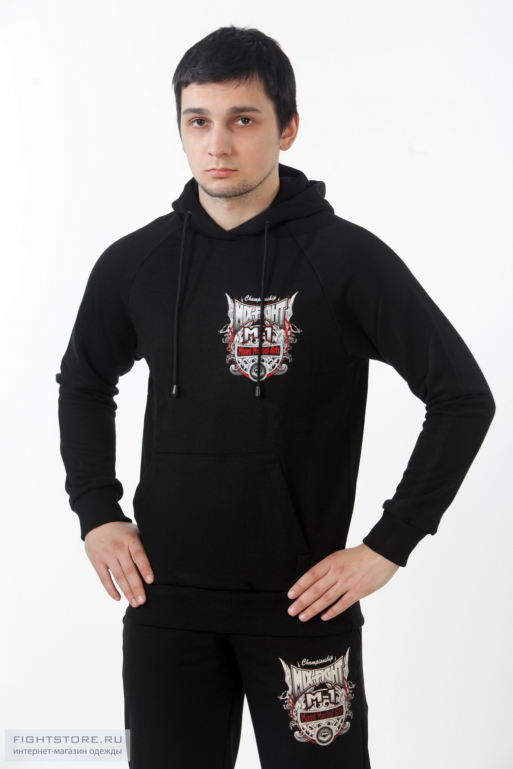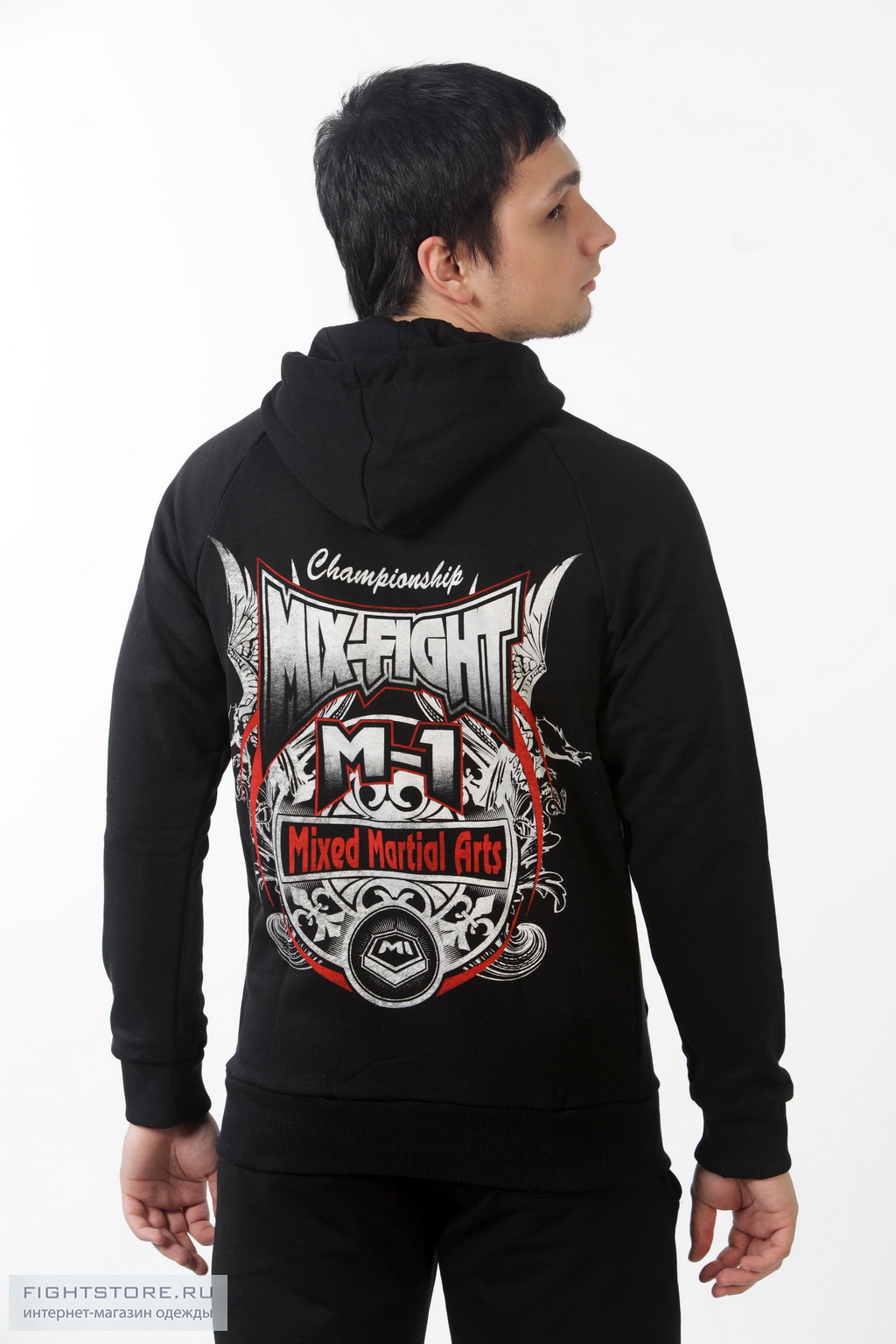 Толстовка ММА Миксфайт М-1 черная, худи, кенгурушка изготовлена из высококачественного материала - футера.