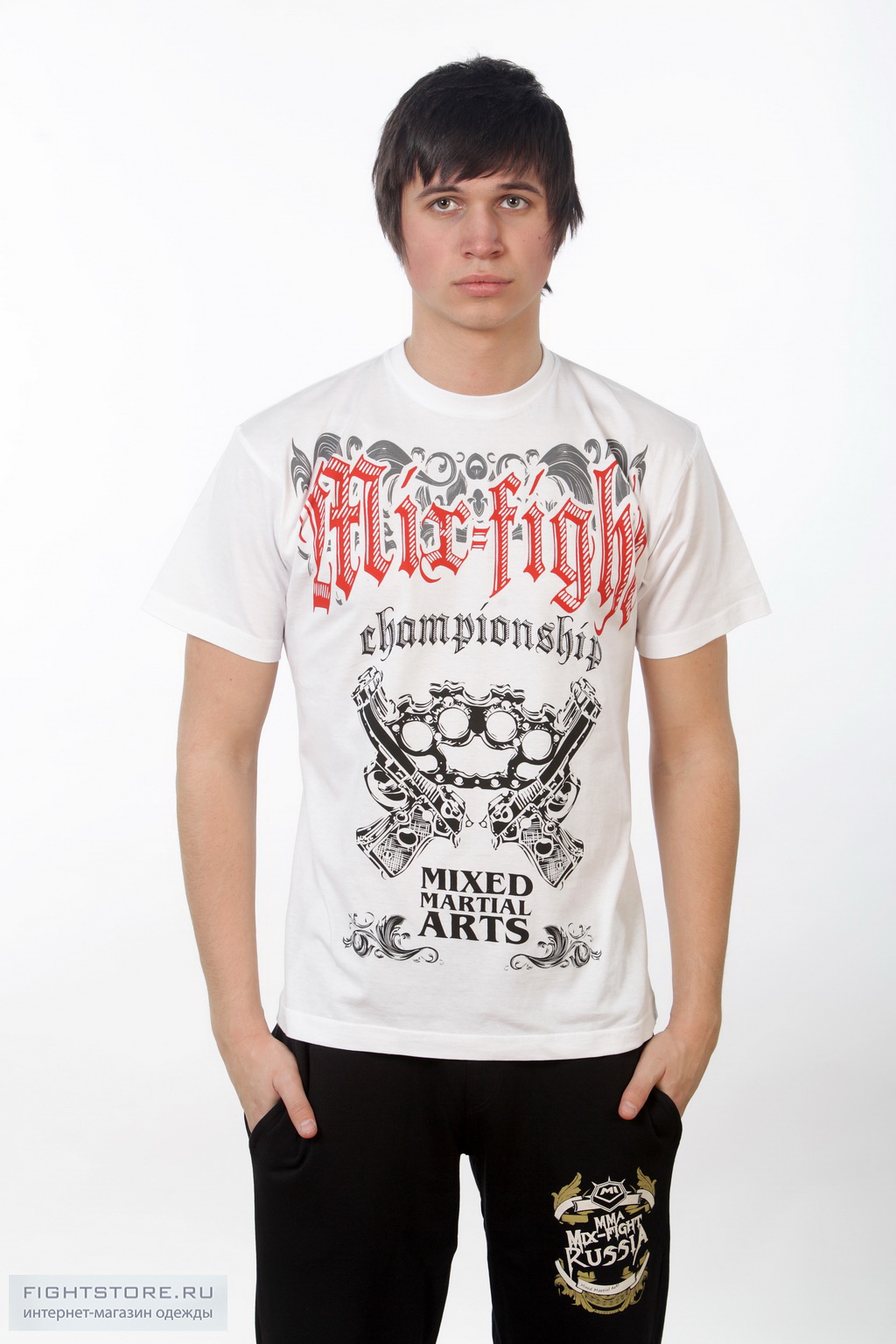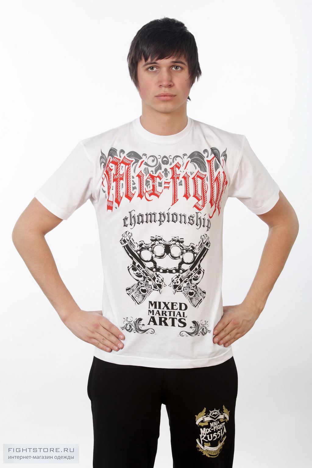 Футболка ММА Револьверы белая из оригинальной коллекции одежды для ММА от компании М-1.