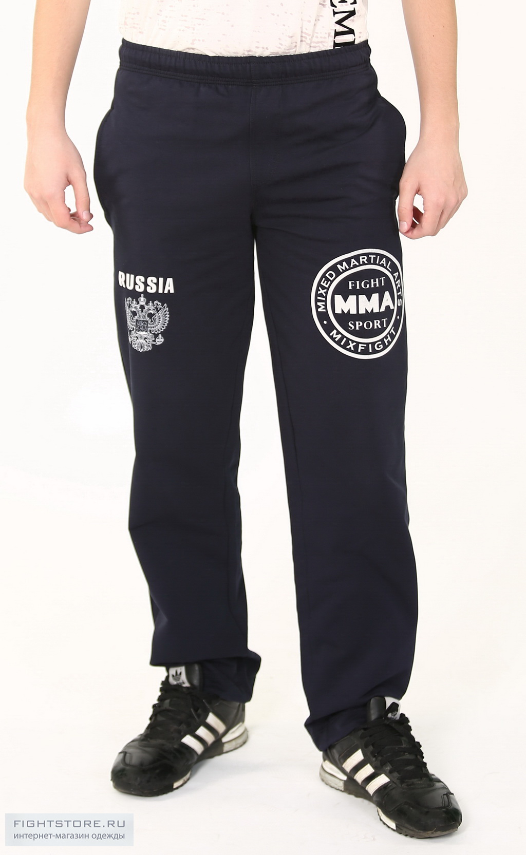 Спортивные брюки ММА Sport Russia отлично подходят как для занятий смешанными единоборствами, так и для обычных тренировок(фитнес,бег). Состав данных брюк, позволит вашей коже дышать во время тренировок и предотвратит излишнее вспотевание, в то же время сохранит тепло в прохладную погоду. Спереди нанесение: круглый логотип MMA - Mixed Martial Arts и надпись Russia c изображением двуглавого орла.