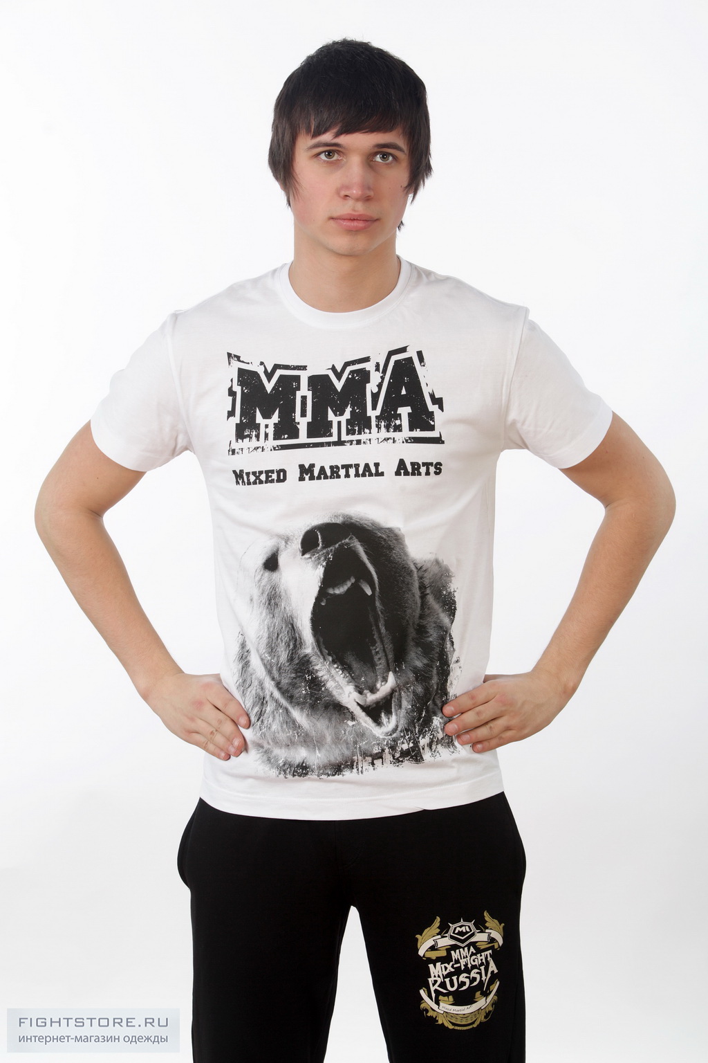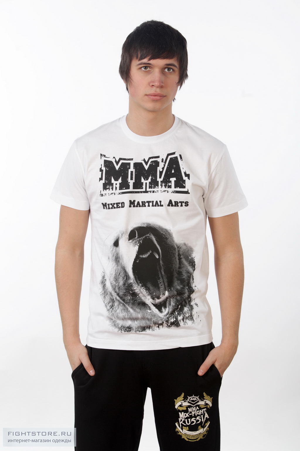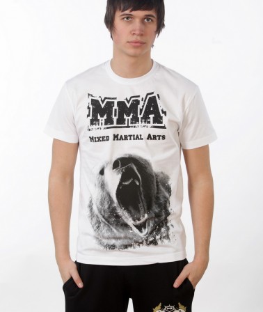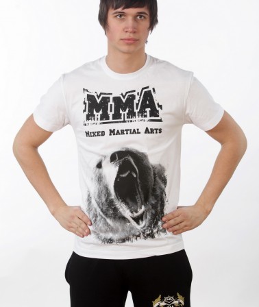 Футболка ММА Медведь белая из оригинальной коллекции одежды для ММА от компании М-1. На футболке изображено одно из самых сильных и опасных животных встречающихся на Земле - хозяин леса медведь.