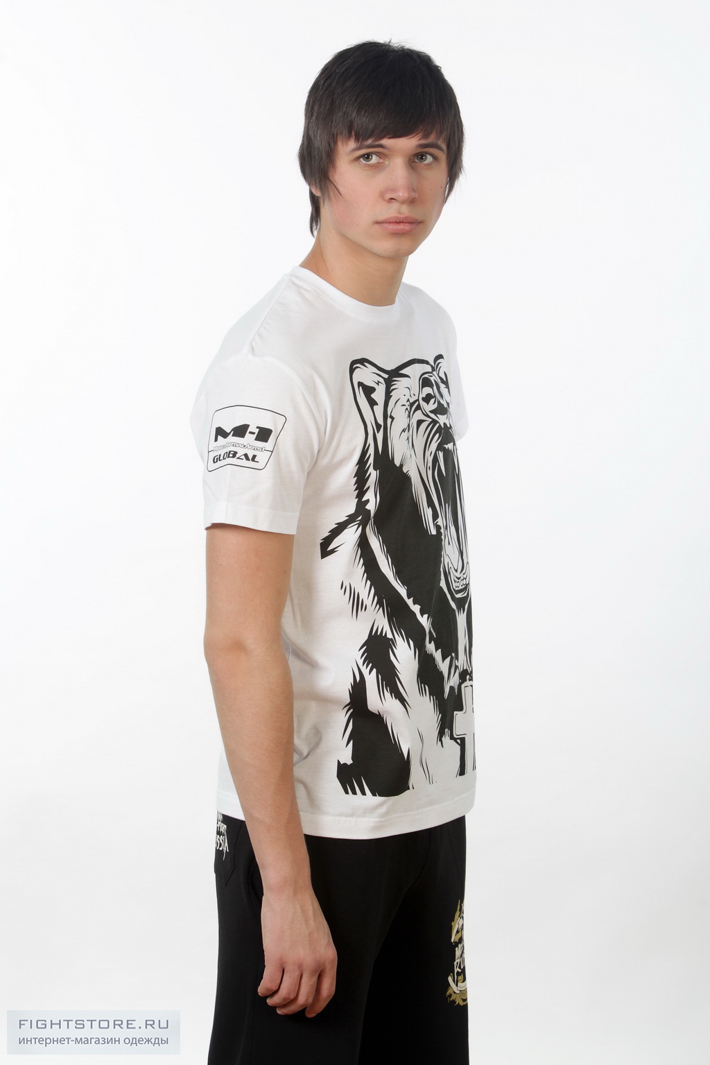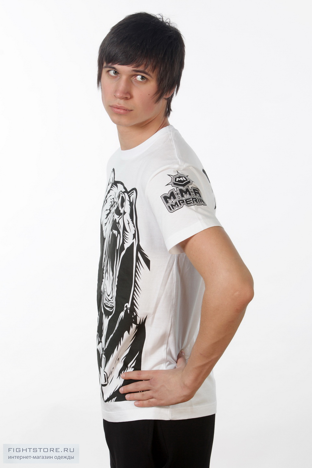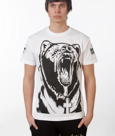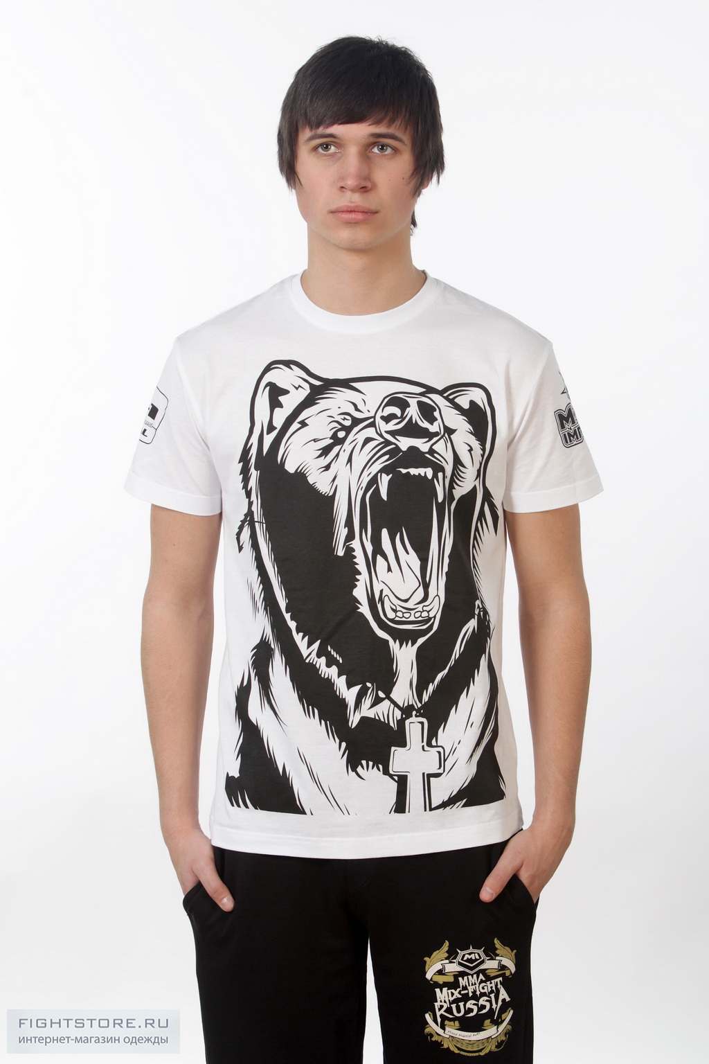 Футболка ММА Разъяренный медведь белая из оригинальной коллекции одежды для ММА от компании М-1. На футболке изображено одно из самых сильных и опасных животных встречающихся на Земле - хозяин леса медведь.