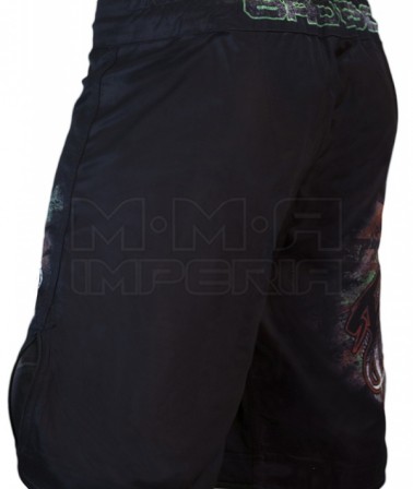 Шорты сшиты из прочного материала, очень лёгкие, обеспечивают высокую подвижность. Специальные прорези по бокам обеспечивают необходимую подвижность шорт при ударах ногами, поясное крепление устроено таким образом, что вам не придется поправлять шорты во время тренировок и выступлений. Рисунок нанесен на специальном оборудовании и не стирается даже при многочисленных стирках.