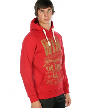 Красная толстовка худи с капюшоном All you have из высококачественного материала. Спереди принт с надписями выполненными золотой краской Born to Win (пер. Рожденный побеждать) и You have all you need (пер. У тебя есть все что необходимо, прим. для победы). Уникальная толстовка для поклонников стильной одежды с символикой единоборств и ММА.