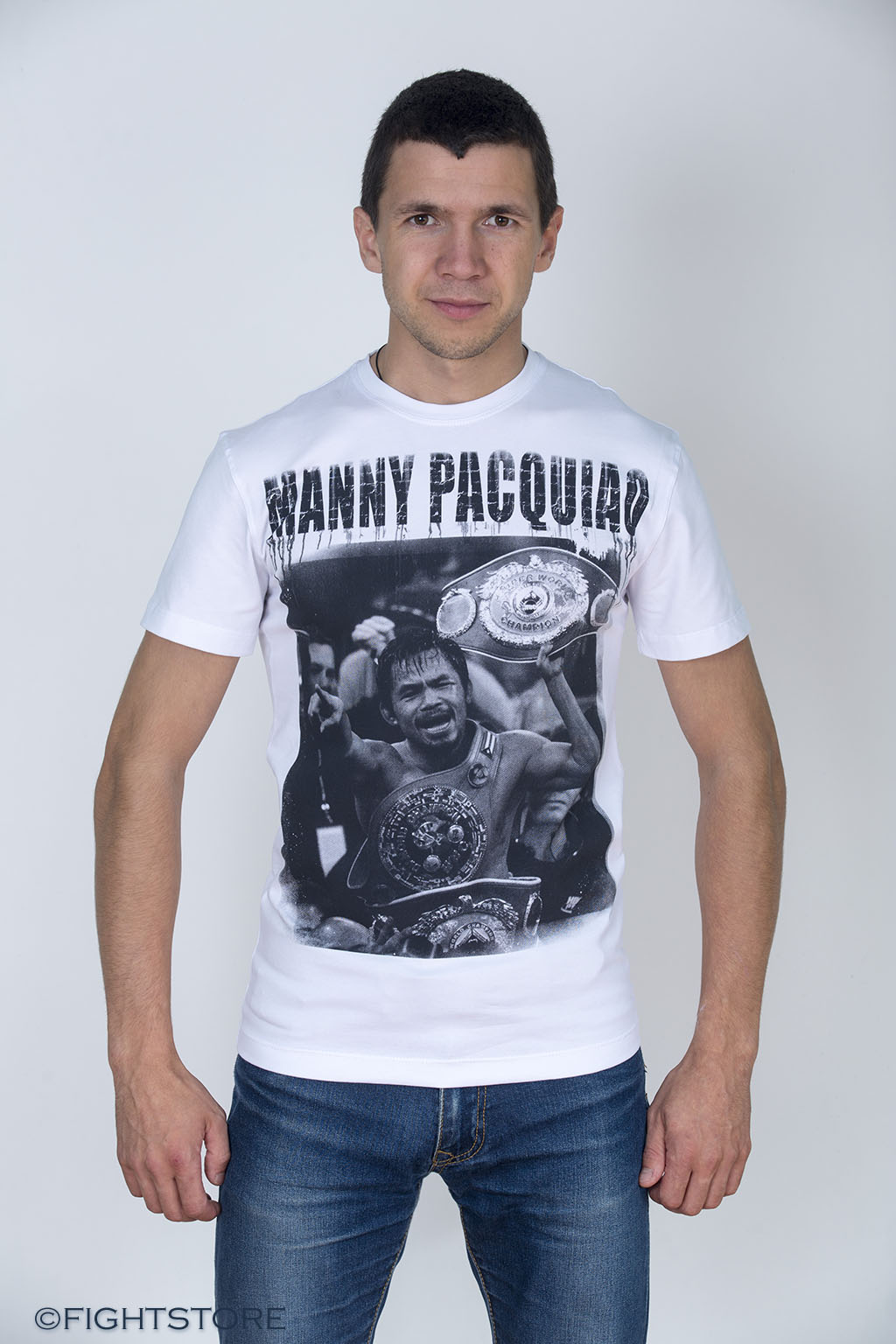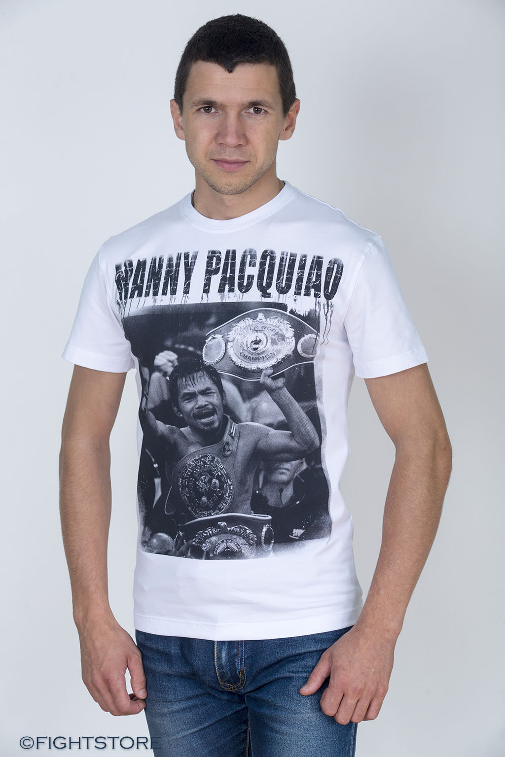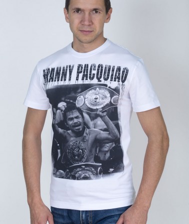 Футболка Мэнни Пакьяо (Manny Pacquiao) с изображением филиппинского боксера-профессионала входящего в число лучших боксеров мира независимо от веса. Мэнни Пакьяо становился чемпионом мира в 7-ми весовых категориях. «Боксёр 2006 года» и «Боксёр 2008 года», «Боксёр 2009 года», «Боксёр десятилетия» по версии Ассоциации журналистов, пишущих о боксе. Прозвище — «Pac-Man».