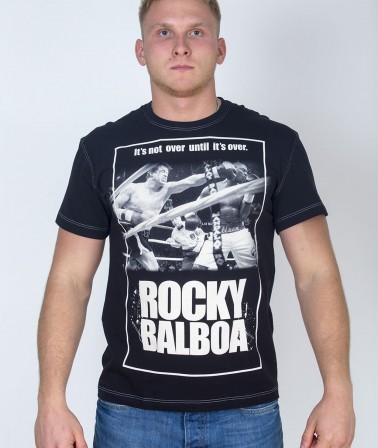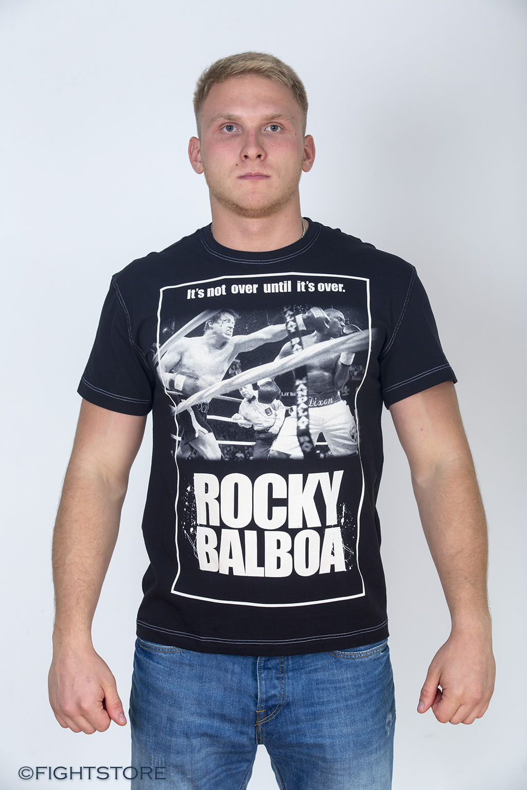Футболка Рокки с изображением главного героя одноименного фильма, бесподобно сыгранного Сильвестром Сталлоне. Запечатлен момент противостояния в ринге. Надпись над изображением: It's not over, until it's over (пер. с англ. Это еще не конец, пока все не закончилось). Качество футболки: наличие фирменных нашивок и ярлыков, высокая износостойкость, рисунок не смывается при многочисленных стирках, фирменный стрейтч-материал.