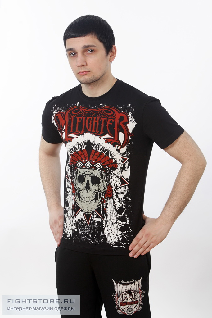 Футболка ММА Череп Индейца черная