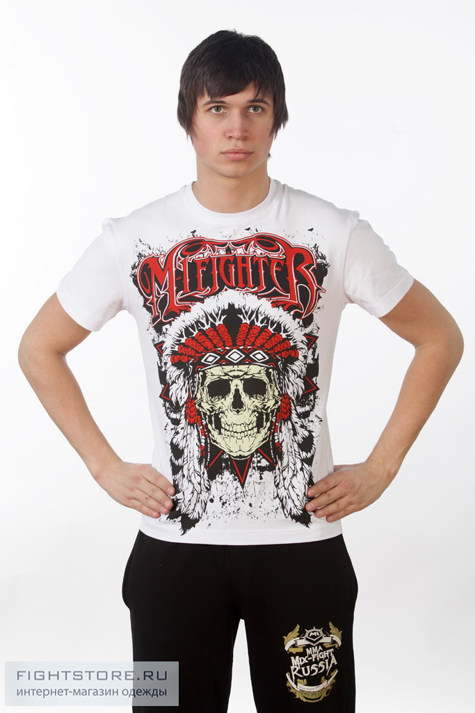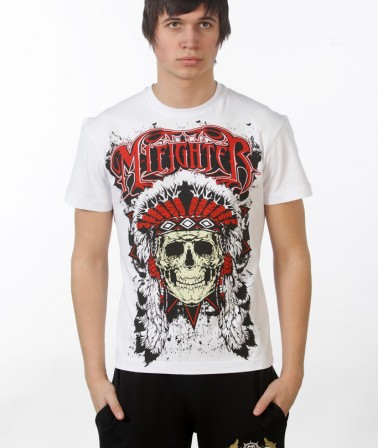 Футболка ММА Череп Индейца, белая из оригинальной коллекции одежды для ММА от компании М-1, признанного лидера в организации чемпионатов по смешанным единоборствам. Эффектный рисунок-символ Череп Идейца может выглядеть устрашающе, но при этом служить оберегом от всего ужасного. Череп символ разрушения и смерти. Это изображение защищает от "костлявой", сбивая ее с толку, когда она ищет очередную жертву. Именно так использовали этот образ американские индейцы, у которых идею позаимствовали современные байкеры. Иногда этот символ означает жертвенность и прощение.
